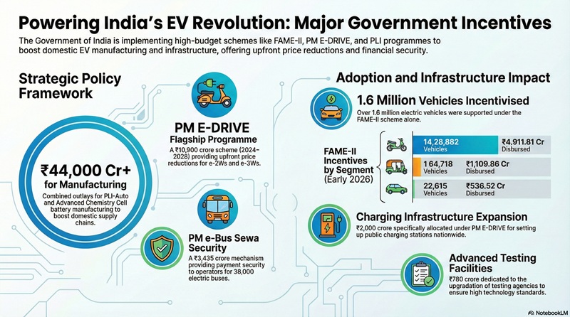 The Faster Adoption and Manufacturing of Electric (& Hybrid) Vehicles in India (FAME India) Scheme has been one of the key pillars of India’s EV push. The second phase of the scheme (FAME-II) was implemented for five years from April 1, 2019, to March 31, 2024, with a total outlay of ₹11,500 crore.