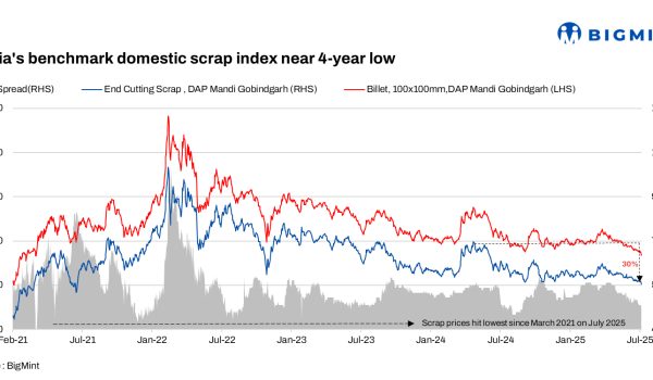 Credits: BIGMINT Consumption drops by 5% y-o-y on steel supply glut South Asia, US, Vietnam lead growth in scrap imports Range-bound…