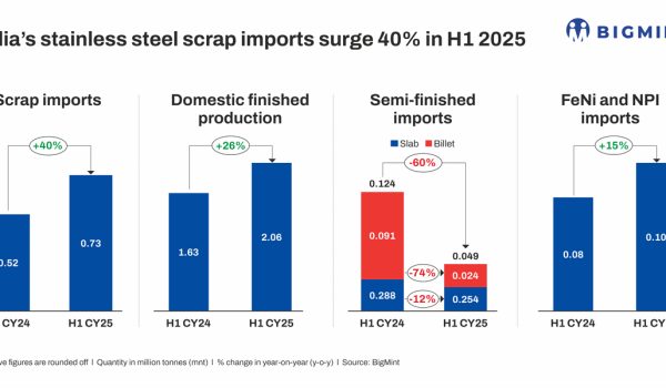 Credits: BIGMINT SS scrap imports reach 0.73 mnt in H1CY'25 Domestic stainless steel production rises 26% in H1 Scrap arrivals rose…